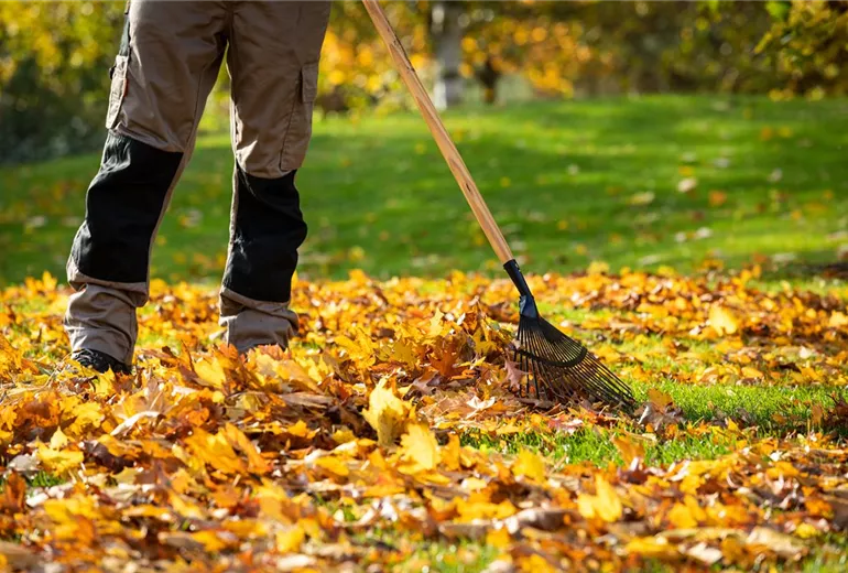Jeder Gartenbesitzer mit größeren Laubgehölzen wird es kennen: Im Herbst liegt der Garten voll mit Laub. Auch, wenn das goldbraune, gelbe, rote, orange oder kunterbunte Laub schön aussieht, sollte man sich als Gartenfreund darum kümmern und bei der Gartenarbeit im Herbst vor allem das Laub beseitigen. Denn liegt es auf dem Rasen, nimmt es den Halmen Luft und sorgt dafür, dass der Rasen eingeht. Daher ist es ratsam, bei größeren Laubansammlungen zur Harke oder zum Rechen zu greifen und das Laub zusammenzuharken. Viele greifen, weil es schneller geht, gerne zu Laubsauger oder Laubbläser. Aber die Geräte sind laut, verbrauchen oft Strom oder Benzin und sind schlecht für die Umwelt. Kleine Insekten und Tiere werden dabei entweder eingesaugt oder durch die Luft gewirbelt und dabei braucht man die doch am meisten im Garten. Bei der Gartenarbeit im Herbst sollte man daher lieber selbst Hand anlegen und mit dem Rechen das Laub zu Häufchen zusammentragen. Das kann einem im Garten lebenden Igel als sicheres Versteck dienen oder kann auf den Beeten als Winterschutz verteilt werden. Ist das Laub von gesunden Pflanzen, kann es auch auf dem Kompost entsorgt werden und sorgt damit für frische Komposterde. Laub von Eiche, Walnuss, Kastanie und Buche sollte allerdings nicht auf den Kompost, denn dieses Laub verrottet besonders langsam. Ist der Rasen von Laub befreit, kann er im Herbst mit einem kalibetonten organischen Rasendünger versorgt werden.