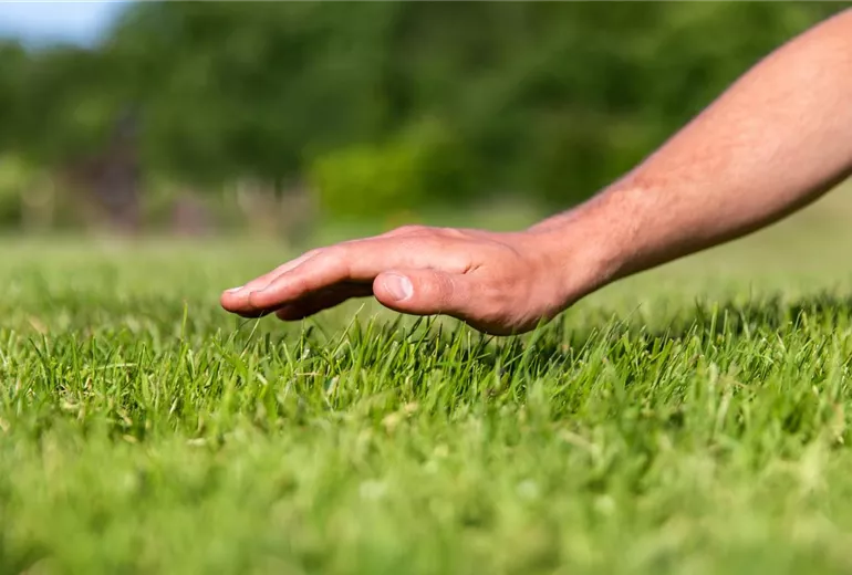 Wasser ist das Lebenselixier für Pflanzen. Das gilt auch für Rasengräser und daher sollte man bei der Rasenpflege auf eine ausreichende Wasserversorgung achten. Aber nicht nur die Menge machts, auch die Tageszeit ist entscheidend. So sollte man den Rasen bei der Rasenpflege vor allem im Sommer nicht in der Mittagszeit wässern. Am besten sind die frühen Morgenstunden vor Sonnenaufgang oder der späte Abend nach Sonnenuntergang. Andernfalls würden die zierlichen Rasengräser verbrennen. Die Wassermenge richtet sich dabei nach der Bodenbeschaffenheit. Ein lockerer Boden braucht ca. 15 Liter, ein lehmiger Boden ca. 20 Liter pro Quadratmeter. Und wer doch ein paar Lücken im Grün hat, kann einfach bei der Rasenpflege mit der Nachsaat beginnen. Dafür kann man nach dem Vertikutieren im Frühjahr oder Herbst einfach neue Rasensamen in kahle Stellen säen. Das geht am besten mit der Hand oder mit einem Streuwagen. Wichtig ist die Gleichmäßigkeit, damit auch alle kahlen Stellen neu bewachsen sind.